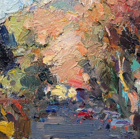It's my first time coming to this East Coast city to paint and exhibit with two wonderful artists. The ancient buildings along the streets and the cultural customs of the streets definitely give me a fresh feeling and space for imagination. There must be a big difference from Los Angeles on the western coast, such as construction, scenery, and lifestyle. I'm also looking forward to doing a painting workshop here in Wilmington for two days.