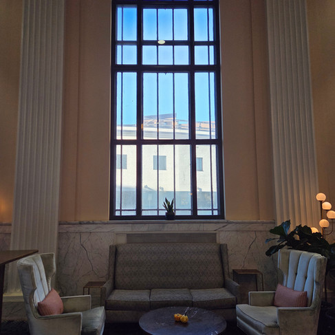 The best way to experience Roanoke is to stay downtown, where the city’s old soul and new energy intersect—and nowhere captures that balance more beautifully than the Liberty Trust Hotel. Housed in a grand former bank building, the hotel is a carefully preserved chapter of Roanoke’s history, reinterpreted for modern travelers. From the moment you arrive, the building makes an impression. Bronze main doors, a granite exterior adorned with carved rosettes, and a balustrade roofline speak to a bygone era of craftsmanship and permanence. Inside, copper-clad doors open into an opulent, marble-lined lobby, where imposing pillars, decorative plaster ceilings, and gleaming floors set a tone of grandeur. The former marble teller counters have been transformed into a beautiful bar, now serving as the heart of The Vault, the hotel’s bar and restaurant. Dining here feels singular, especially when you reserve one of the most memorable tables in the city: inside the historic bank vault itself, now converted into an intimate private dining and wine-tasting room. Thick steel doors, preserved details, and curated bottles make it an experience that feels both theatrical and deeply authentic.